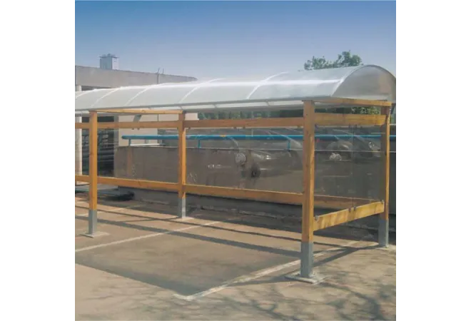 - Toit : couverture arrondie 2 faces en polycarbonate alvéolaire traité anti-UV, pincées entre les arceaux