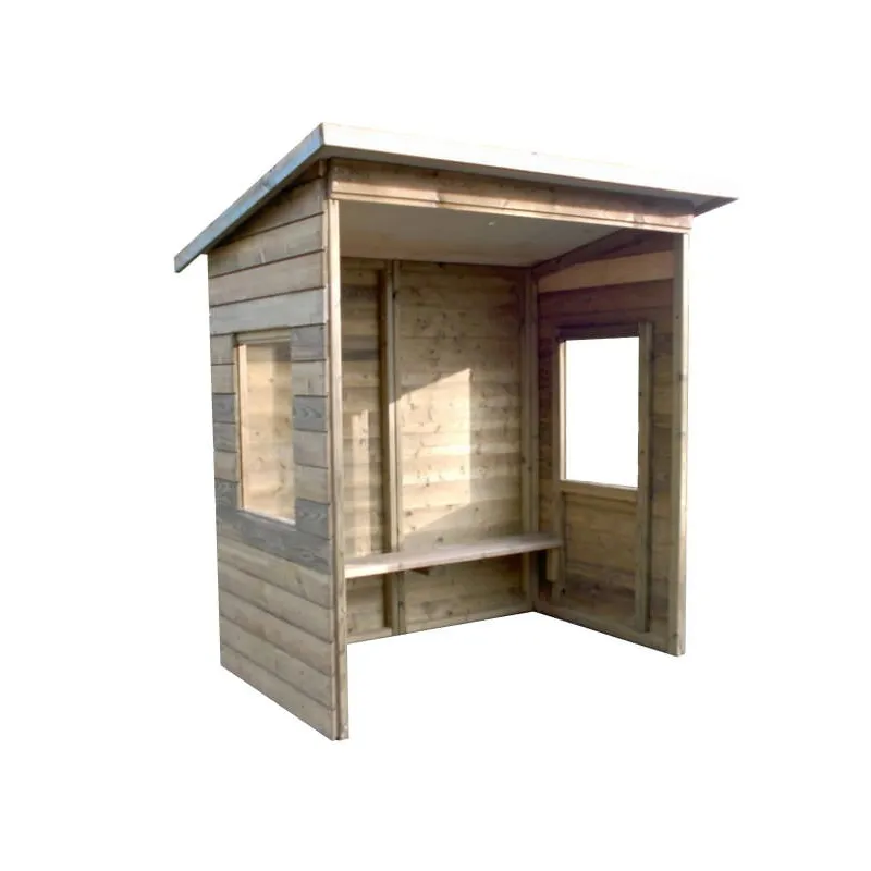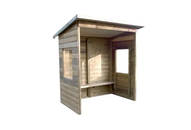 Pour équiper vos collectivités tout en préservant l’esprit traditionnel de votre commune, sans dénaturer le paysage, cet abribus scolaire en bois est une solution intéressante. Conçu en pin du Nord rouge traité autoclave contre les intempéries, cet abribus en bois résiste à la pluie comme aux rayons UV et garde toute sa splendeur année après année. Avec sa longueur de 2 mètres, ce modèle peut accueillir plusieurs personnes sur un banc intégré en bois. D’autres peuvent tenir debout et observer l’arrivée du bus via les fenêtres en plexiglas, disposées de chaque côté de l’abribus en bois. Le fond en clin plat de l’abribus scolaire en bois permet une protection optimale, même par temps de vent.