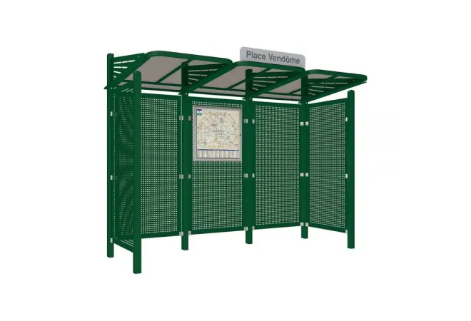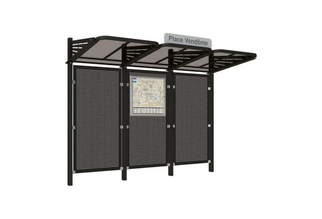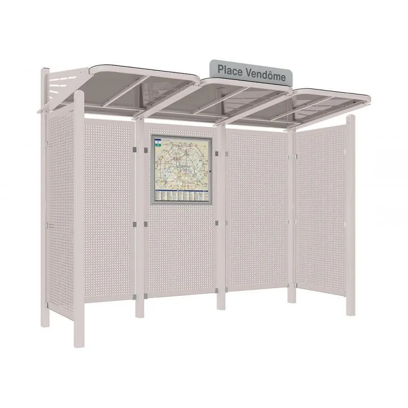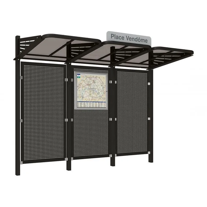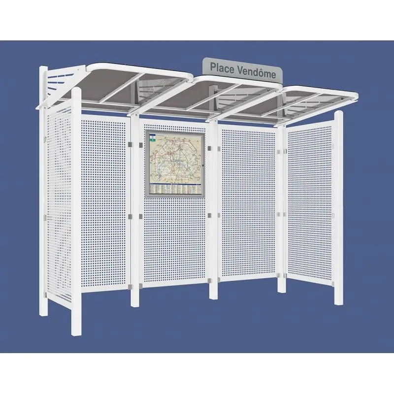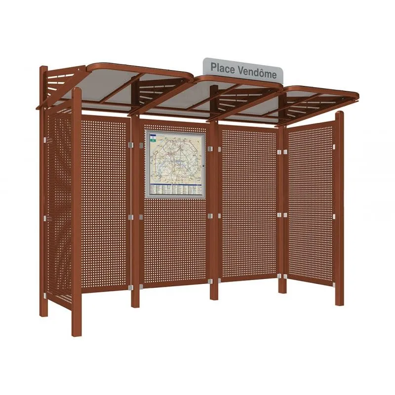 La station bus avec bardages en acier sera idéale pour abriter les personnes attendant le bus. L'abri bus en porte-à-faux est design, il s'harmonisera et embellira vos espaces communs extérieurs. De plus, l'arrêt de bus peut s'étendre à l'infini.
