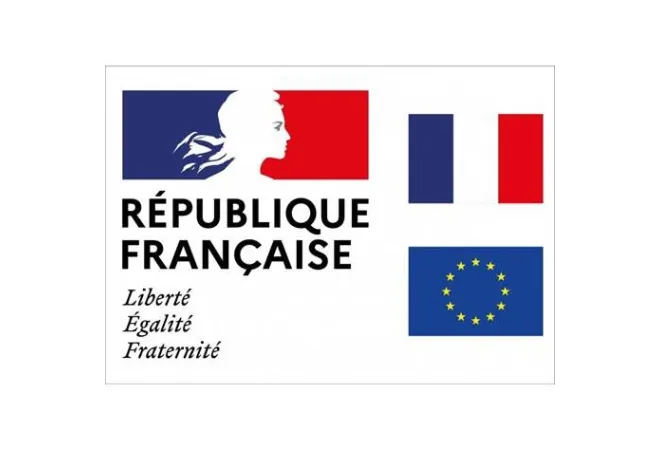 Cette plaque est conforme à la réglementation de La loi Peillon, du 8 juillet 2013. Elle regroupe les 2 drapeaux obligatoires. Le drapeau tricolore, le drapeau européen, ainsi que la devise française : "Liberté, Égalité, Fraternité". Cette plaque est disponible en 4 tailles différentes. Du A3 au A0.