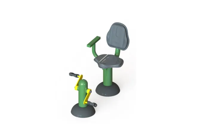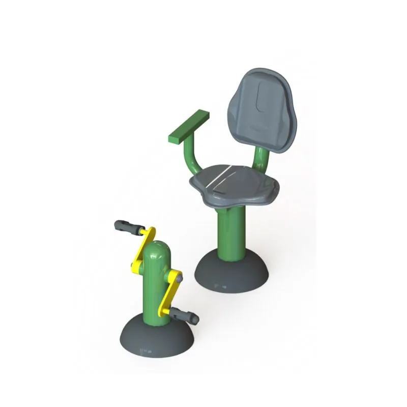 Pour travailler toute la partie basse du corps, le pédalier en acier avec siège pour l'extérieur est très efficace pour la souplesse articulaire des membres inférieurs et supérieurs. Ainsi que le travail sur la synchronisation de mouvements. Ce pédalier est fabriqué pour l'extérieur et ne craint donc pas les intempéries. À installer sur vos parcours de santé.