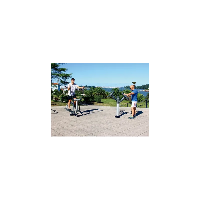 Selon la norme EN 16630 : N’exige pas un sol qui amortit les impacts selon le test HIC de la norme EN-1176.