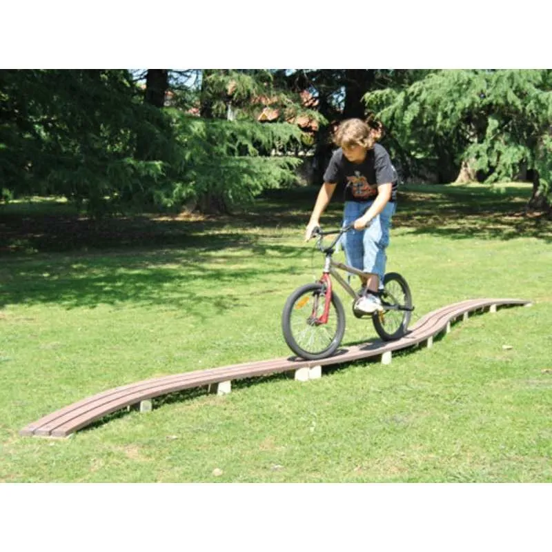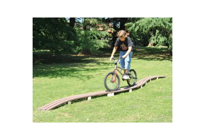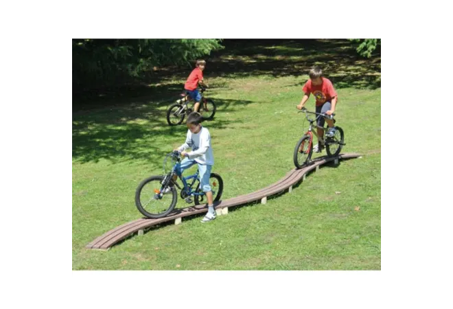 Le module VTT Passerelle courbée est un équipement sportif spécialement conçu pour l'aménagement des parcours VTT. Il propose aux cyclistes une expérience ludique et permet de tester leurs compétences en équilibre et en coordination. Associé à d'autres modules VTT, cet équipement offre un véritable terrain de jeu pour les passionnés de vélo.