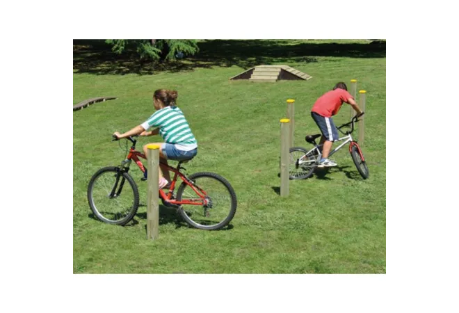 Le module VTT Slalom, spécialement conçu pour les amateurs de vélos, propose un parcours divertissant pour mettre à l'épreuve les compétences techniques des cyclistes. Ce parcours en slalom offre une expérience ludique et stimulante, favorisant le développement de l'agilité et de l'équilibre des usagers. Pour ajouter du plaisir à l'entrainement en plein air, il est possible de compléter ce module avec d'autres équipements sportifs pour VTT.