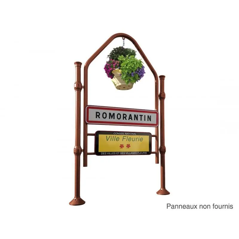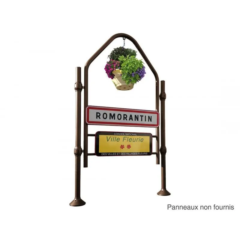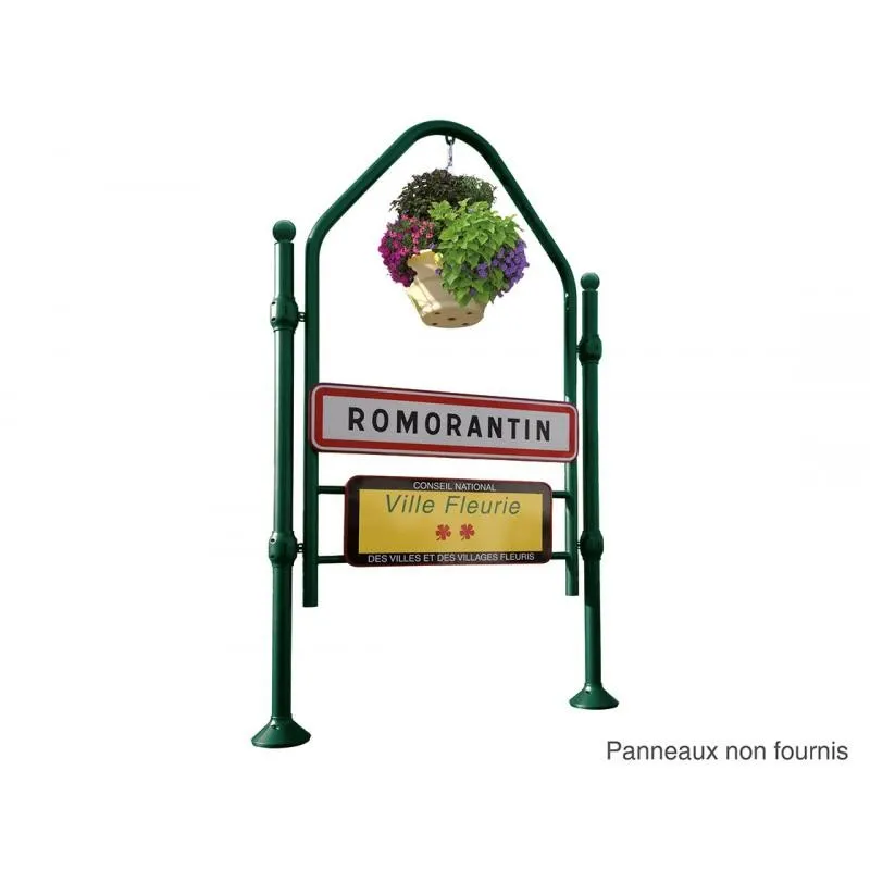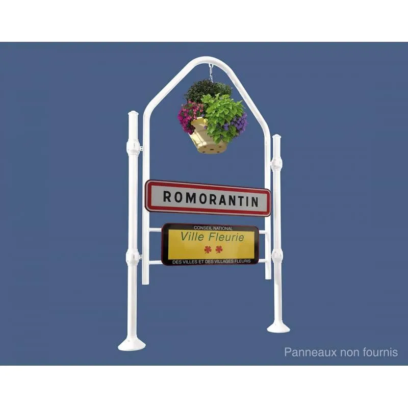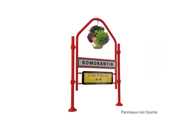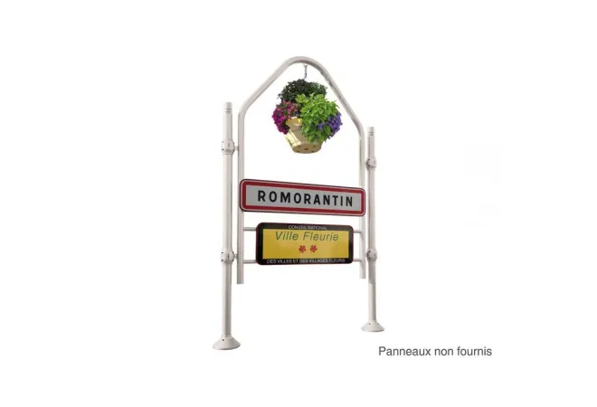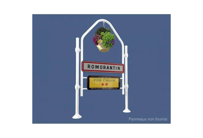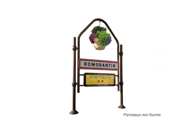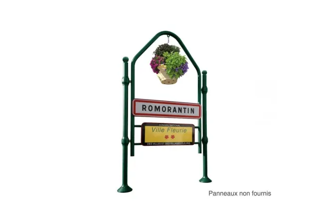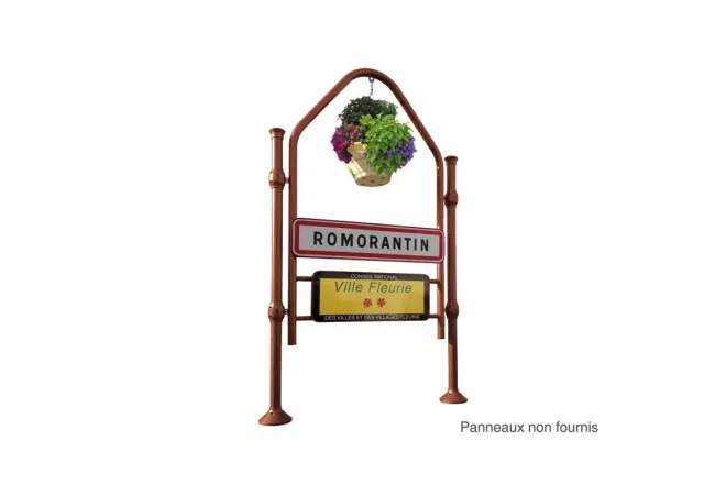 Embellissez l'entrée de votre commune grâce au panneau de signalisation "Entrée de Ville". Les usagers de la route seront avertis de leur arrivée dans votre ville. Déclinable en 10 coloris et pommeau au choix, l'Entrée de Ville s'harmonisera parfaitement avec votre mobilier urbain déjà en place.
