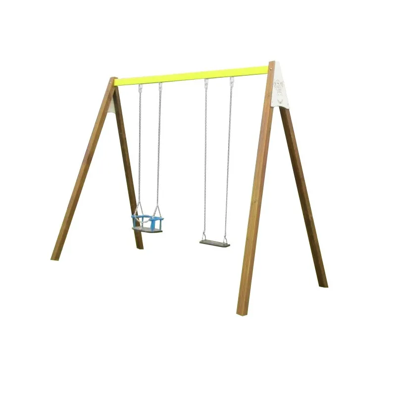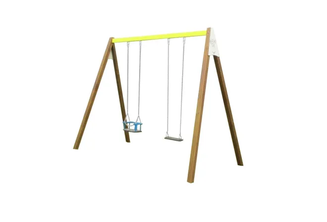 Adaptée aux enfants de 0 à 8 ans, cette balançoire pour aire de jeux s'installe facilement. Composée d'une place classique et d'une nacelle pour bébé, cette balançoire en bois avec nacelle s’adresse à tous les enfants. Installez ce portique d’extérieur en bois dans une aire de jeux, un parc ou un jardin en toute sécurité. Ce portique pour enfants en bois, fabriqué en France, bénéficie d’un traitement autoclave de classe IV.