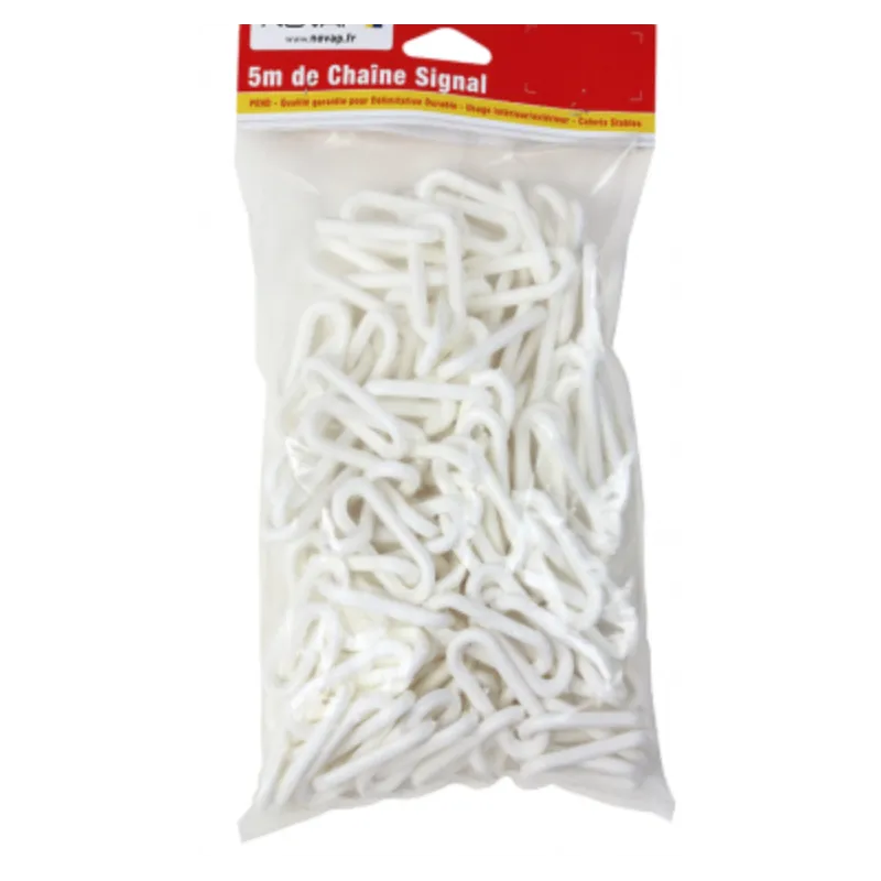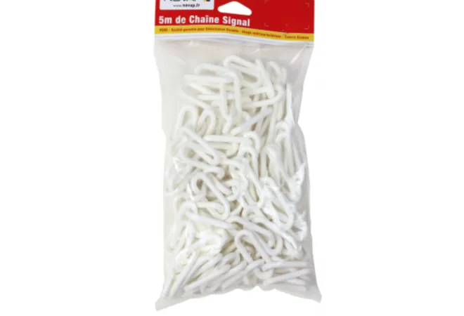 Sachet de 5 mètres de chaînette en plastique blanc disponible en 3 diamètres. Cette chaîne de chantier blanche est utilisable en intérieur et en extérieur.