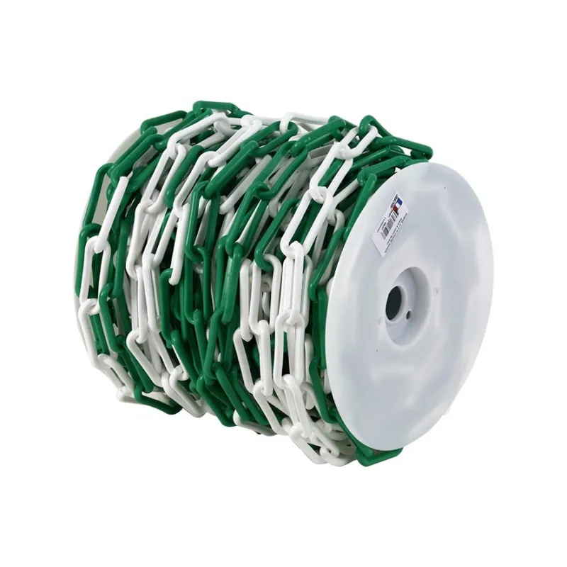 Conçue pour un usage intérieur et extérieur, cette chaîne en plastique en bobine est idéale pour la découpe au mètre. Disponible en plusieurs longueurs et diamètres.