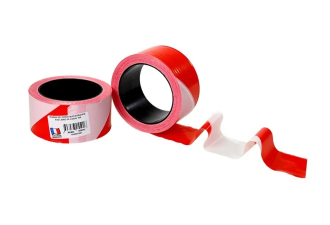 Ruban de chantier haute qualité rouge et blanc avec grande résistance à l'étirement.