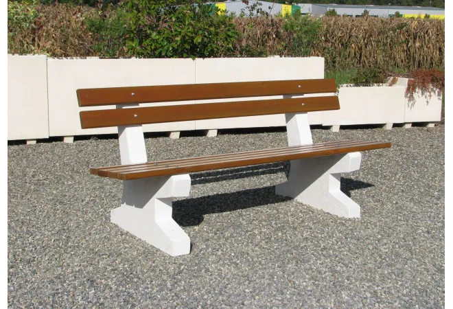 Banc public en béton armé et lames de bois pour aménager vos lieux publics ou privés. Ce banc béton bois public est de fabrication Française.