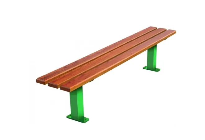 Leader Equipements vous propose la banquette de ville en bois et métal Los Angeles. Elle est composée de 3 lames en bois traité au choix : soit en pin du nord vernies coloris châtaignier, soit en pin du nord traité autoclave classe III soit en bois exotique verni. L'épaisseur des lames est de 34 mm. Les lames sont à visser sur le piétement en acier en forme de T sur platine, finition peinture au four coloris RAL 6005 vert mousse. La visserie est fournie.
