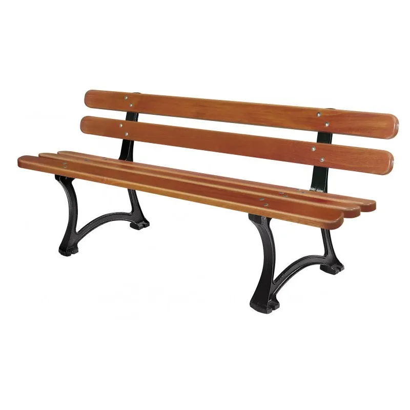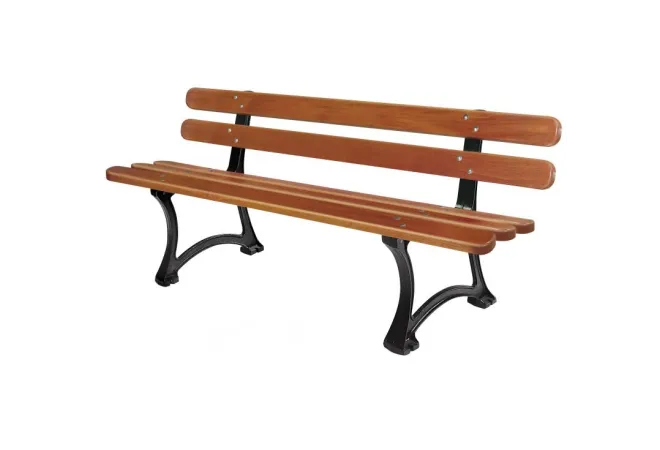 Leader Équipements vous propose le banc de jardin public Saragosse avec ses 5 lames arrondies. L'assise et le dossier sont réalisés en lames de bois exotique d’une épaisseur de 35 mm. Le bois exotique est gage de robustesse et de pérennité dans le temps. Résistant aux attaques de champignons, insectes xylophages et hydrofuge, le bois exotique est un bon investissement à long terme. Les lames du banc public sont chanfreinées et vernies afin de lui assurer davantage de confort.