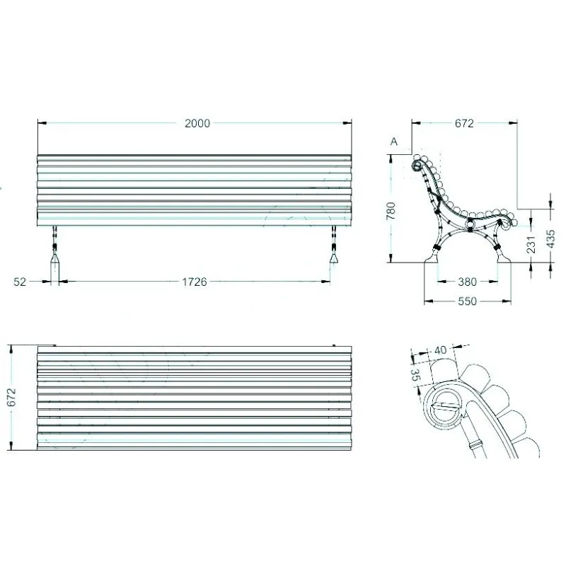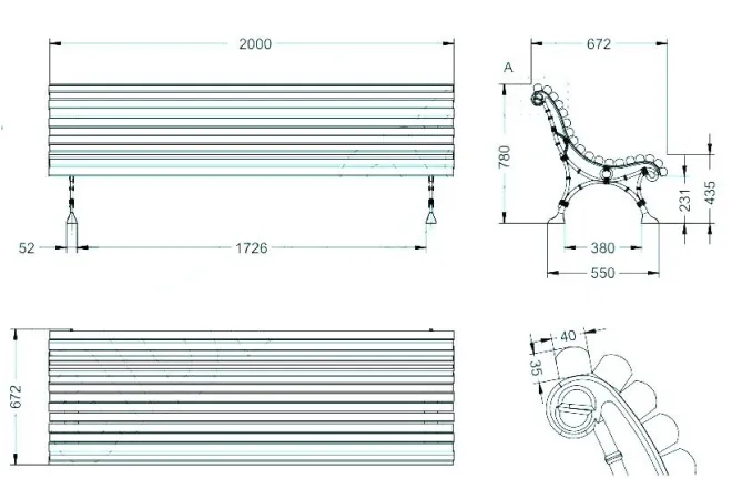 Leader Équipements vous propose un banc spécial parcs et jardins : le banc public en bois et fonte Romantico. Il est composé de 18 lattes / lames formant l'assise et le dossier en 40 x 35 x 2000 mm. Elles sont en bois exotique, traitée fongicide, insecticide et hydrofuge, parfaitement adaptées pour les extérieurs. Elles sont vissées sur le piétement avec une visserie en acier zingué. Le piètement travaillé est en fonte, perforé pour pouvoir fixer le banc au sol avec vis d'ancrages fournies. La forme du piétement de ce mobilier urbain, tel les bancs romains en forme de X dit en curule, tire son nom de cette inspiration romaine. Une platine centrale renforce les lames en son milieu. Le banc public Romantico est livré monté. Les dimensions du banc sont : Longueur : 2000 mm - Hauteur totale : 780 mm - Hauteur d'assise : 440 mm - Profondeur : 661 mm - Entraxe de piétement : 1774 mm - Poids : 51 Kg. Le banc Romantico est idéal dans les parcs et jardins pour offrir aux personnes un lieu de halte et de flânerie confortable. Mobilier urbain, le banc Romantico existe également en version double, vous pouvez-nous consulter pour obtenir votre devis personnalisé.