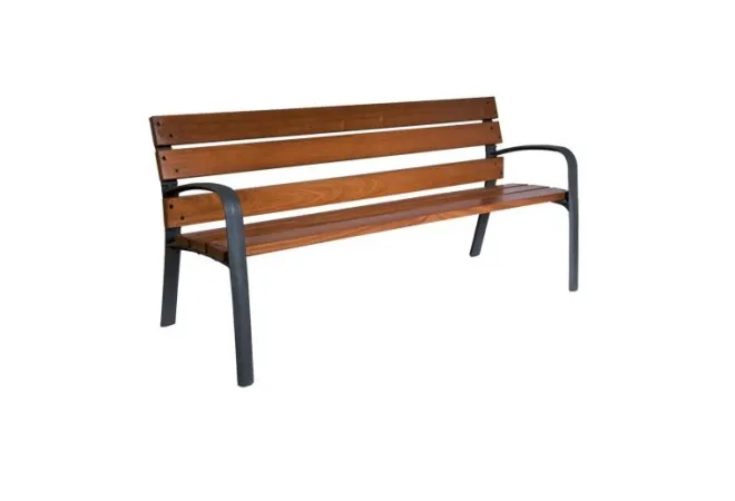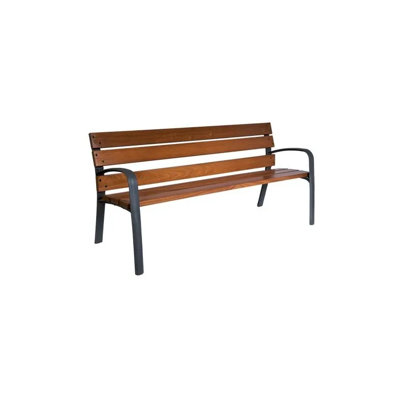 Le banc Modo est conçu pour offrir une importante résistance aux intempéries, avec sa finition en bois exotique et son piétement en fonte ductile. Idéal pour une installation à proximité des espaces verts, bâtiments publics et/ou scolaires. Livré monté.
