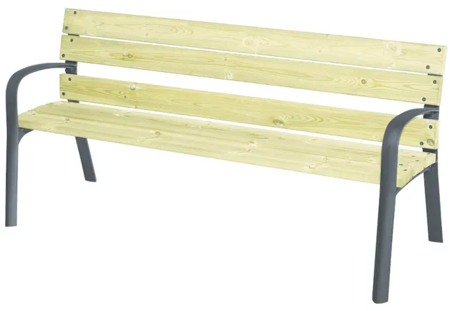 Avec son piètement en fonte et une assise et un dossier en pin, ce banc extérieur en bois bi-matière dispose d’un style élégant et contemporain, qui sera apprécié dans vos lieux publics. Son design épuré participe à sa modernité et à son authenticité. Le modèle du banc public en bois Modo existe également en version banc public lames de bois exotique, en version lames en bois technique, en banc urbain en métal ou en banc public en polyéthylène. Les accoudoirs offrent à ce banc extérieur pour collectivité Modo en pin l'avantage d'aider les personnes à se relever. Un vrai plus pour une installation en centre-ville ou près d’établissements de soin, par exemple.