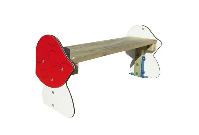 Agrémentez vos espaces publics, Leader Equipements vous propose la banquette ludique Champignon au piétement bois et motifs figurines en HPL. Choisissez la modernité de ce mobilier urbain pour enfant qui s'adapte à tous les parcs, jardins publics, aires de loisirs, écoles, etc.
