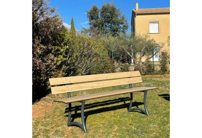 Vous voulez mettre au goût du jour l’aménagement de votre collectivité ? Parc public, chemin de promenade, rue passante, jardin d’immeuble : ce choix de banc public design en HPL est la solution idéale pour apporter du confort à vos usagers sans dénaturer l’environnement. Les lames en stratifié, issues de matériaux à la fois recyclés et recyclables, représentent l’alternative idéale aux matières polluantes ou émettrices de CO2. C’est également un banc pour mobilier urbain à la robustesse éprouvée : le HPL compact est en effet spécialement pensé pour rester étanche à la pluie et résister aux rayons UV. N’hésitez pas une seule seconde à choisir ce type de banc public moderne et solide : l’alliage du métal et du stratifié couleur chêne clair donne de l’élégance à vos espaces.