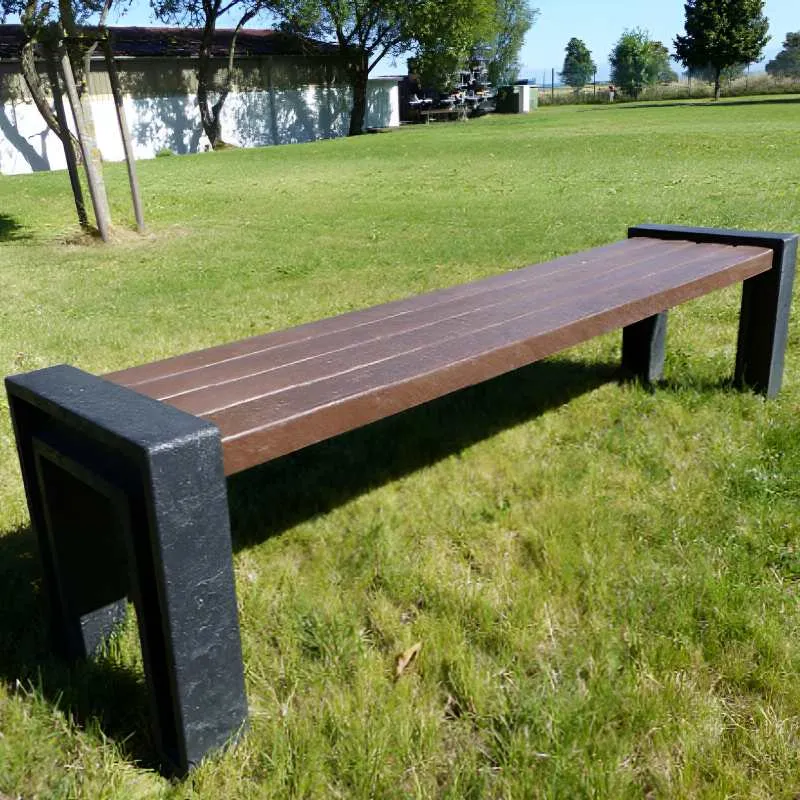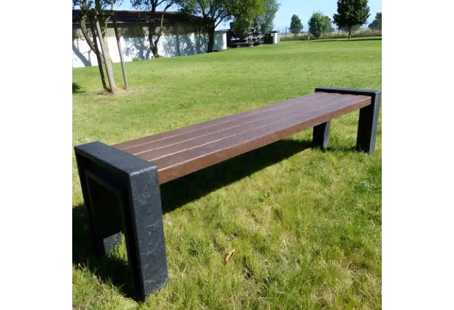 Une banquette publique écoresponsable, fabriquée en plastique recyclé pour résister aux conditions extérieures. Parfaite pour les espaces verts urbains ou ruraux.