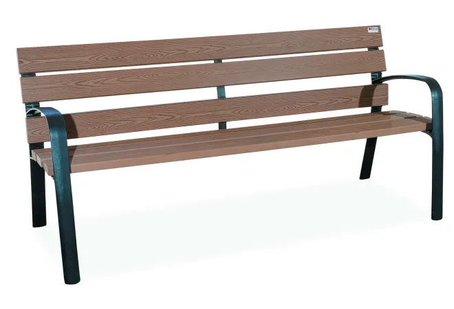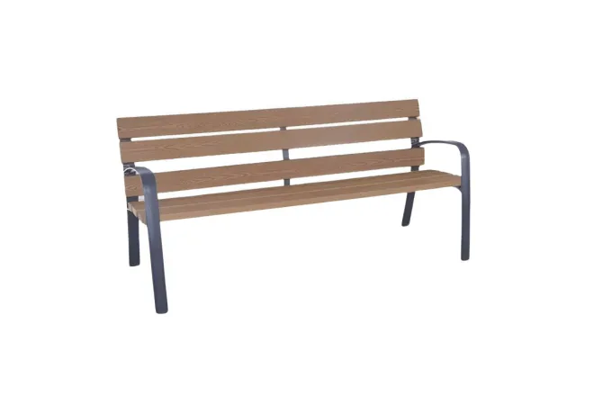Le banc urbain Modo en matériaux recyclé est disponible en longueur 1800 mm (capacité de 3 places assises). Les dimensions du banc Modo technique sont : Longueurs : 1800 mm - Hauteur totale : 836 mm - Hauteur d'assise : 461 mm - Hauteur des accoudoirs : 664 mm - Profondeur totale : 737 mm - Entraxe de piétement : 1738 mm - Poids : 70 Kg. Le modèle du banc public Modo existe également en version banc public lames de bois exotique, en version lames en bois technique, en banc urbain en métal ou en banc public en polyéthylène. Les accoudoirs offrent au banc de ville Modo l'avantage d'aider les personnes à se relever.