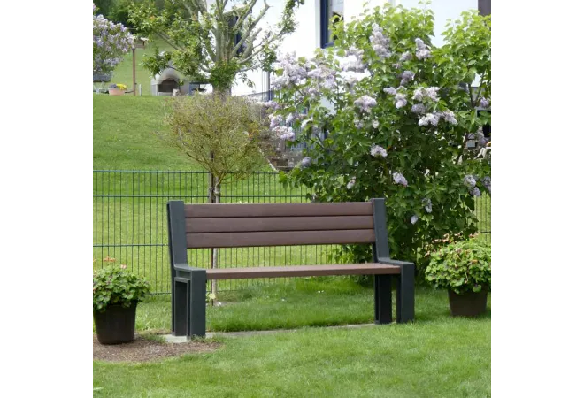 Mobilier urbain en plastique recyclé : ce banc public, conçu à partir de matériaux recyclés, offre une résistance durable aux intempéries et aux UV. Il s'intègre harmonieusement à vos différents espaces verts.