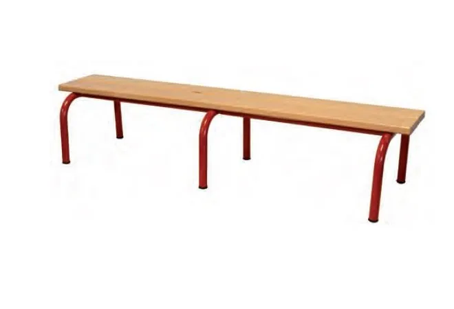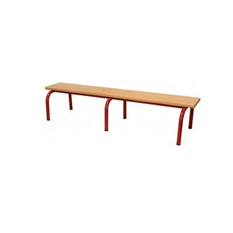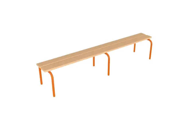 Le banc pour école maternelle Evan a été conçu suivant les normes européennes pour la sécurité et le confort des tout-petits. L'assise est solidement soudée à un piétement en tube d'acier.