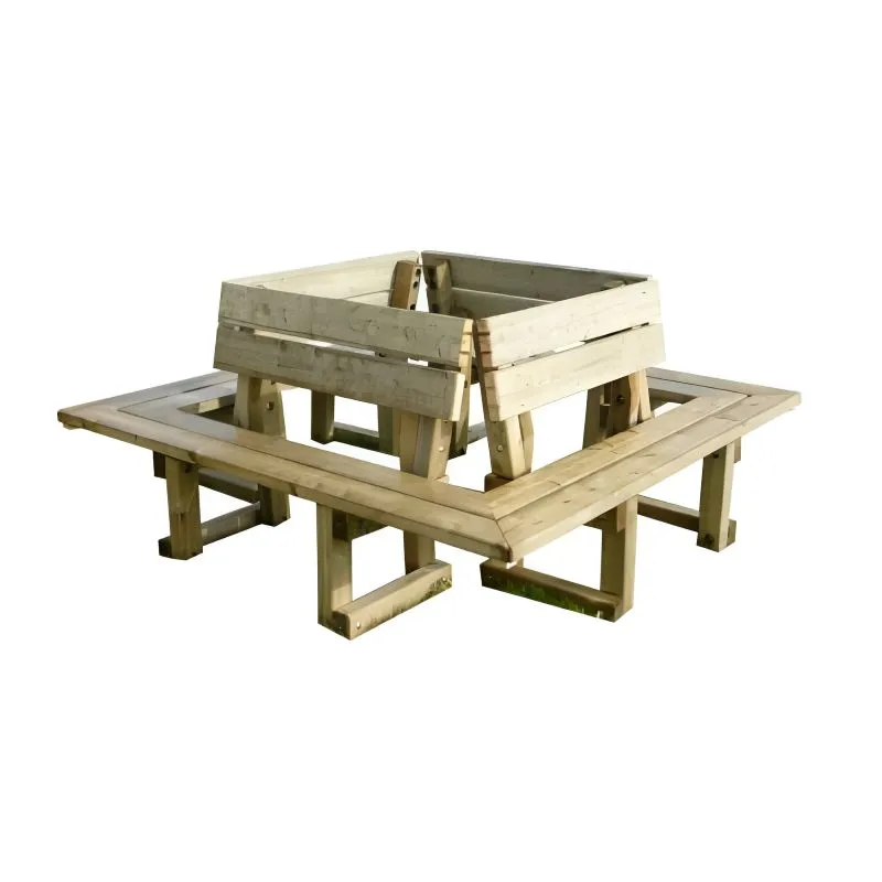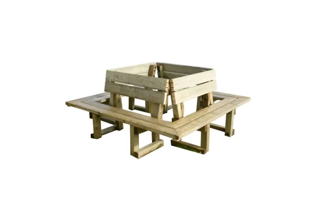 Le banc entourage d'arbre est fabriqué en pin du nord traité autoclave classe IV, gage de stabilité et de haute résistance. Il permet aux collectivités d'embellir leurs espaces extérieurs et de proposer des aires de repos confortables pour tous les usagers