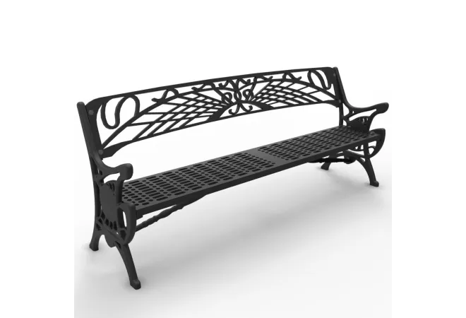 Il est fabriqué en fonte ductile. Ses finitions sont très soignées notamment grâce à la peinture noire. Son design est élégant. Le banc a été créée pour résister aux intempéries et être très solide.