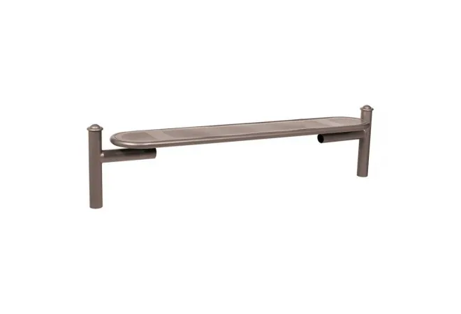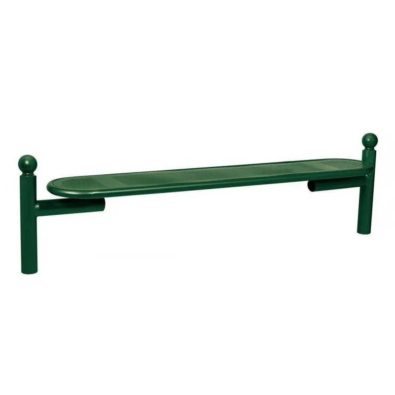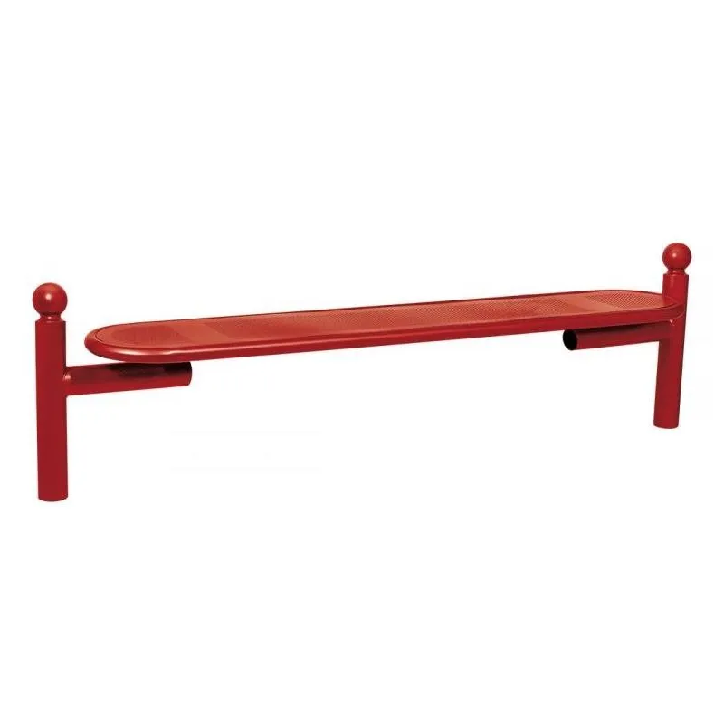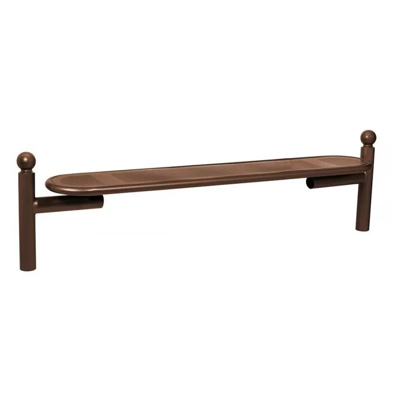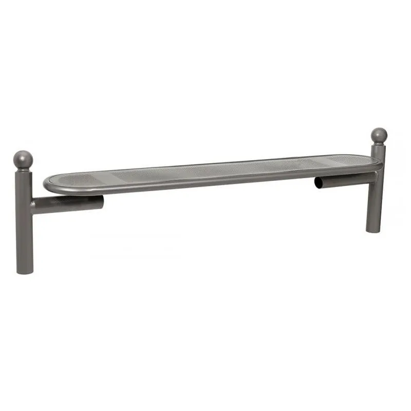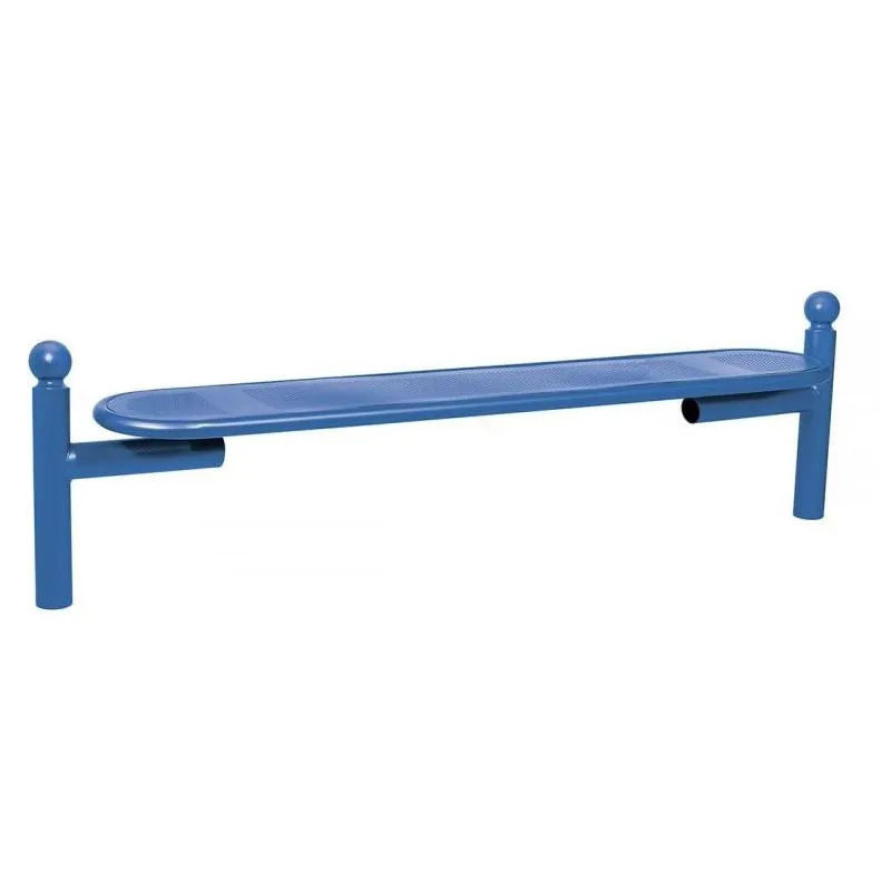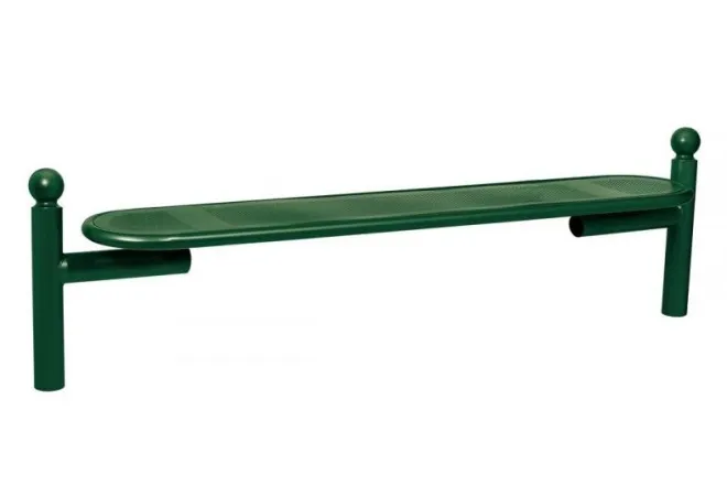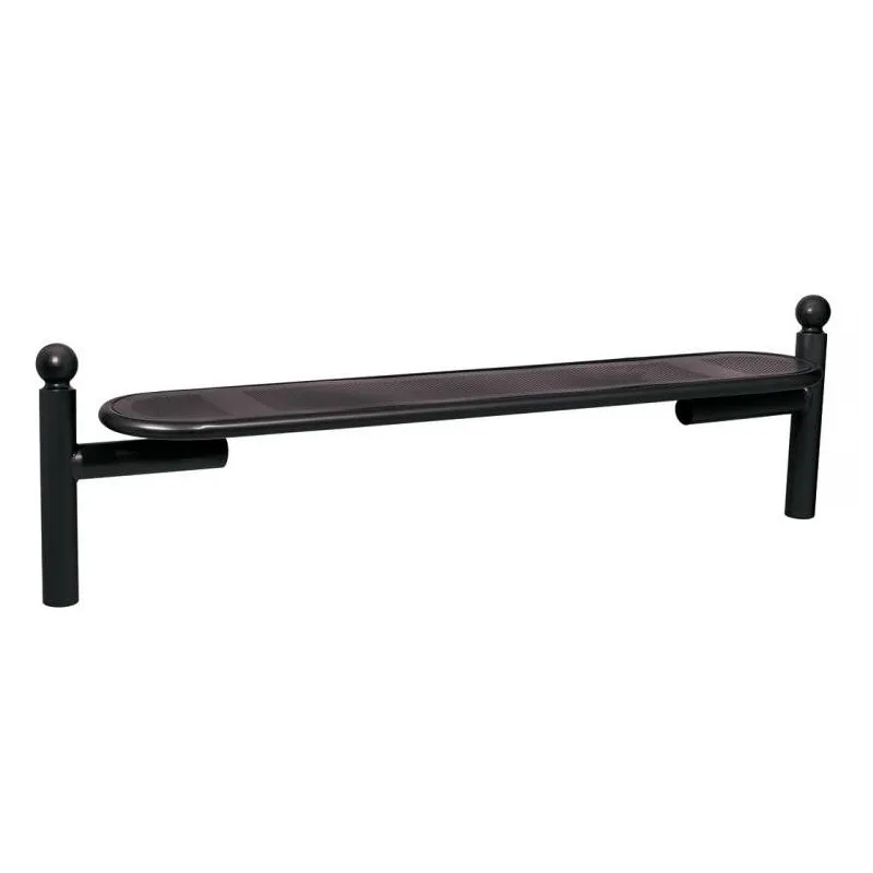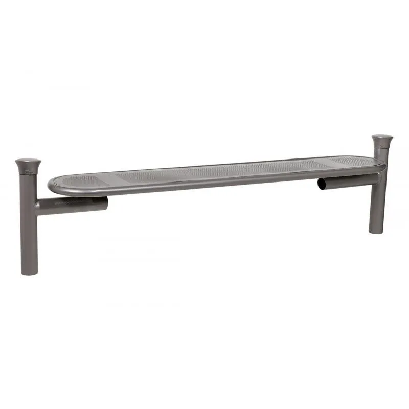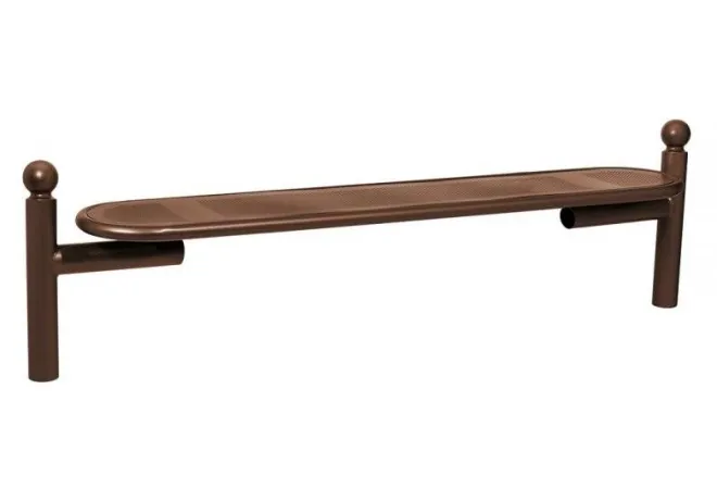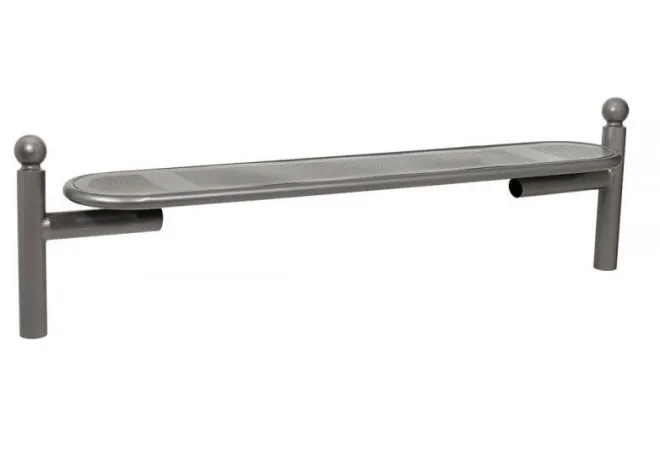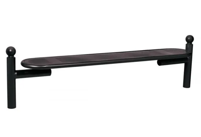 La banquette de ville Estoril est réalisée en tube acier pour le piétement de Ø 76 mm, avec au choix quatre pommeaux décoratifs : soit boule, soit City, Soit Agora soit Forum. L'assise est réalisée en tôle perforée de 2.5 mm d'épaisseur avec plis écrasés et angles arrondis de sécurité aux extrémités. La fixations se fait par scellement direct dans plot béton. Vous avez également le choix entre dix coloris standard pour personnaliser encore plus votre banquette. La perforation de l'assise permet d'éviter à l'eau de pluie de stagner. Fabriquée en France la banquette urbaine métal est issus de la gamme Procity® et se marie à merveille avec nos stations de bus en métal ou nos potelets et barrières de la même gamme.
