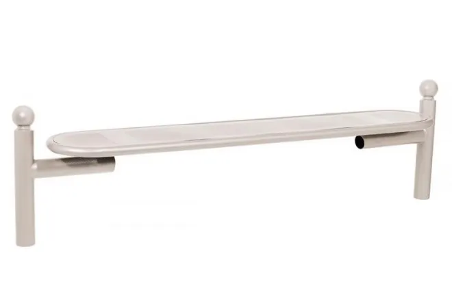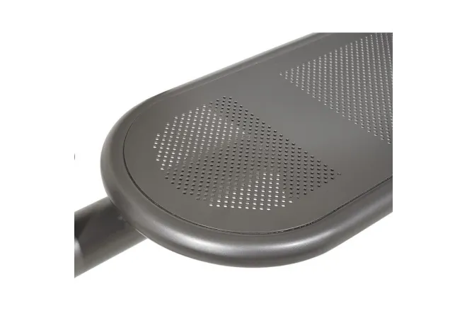 - Assise en tôle acier perforée de 2 mm, cerclée d’un tube acier Ø 38 mm