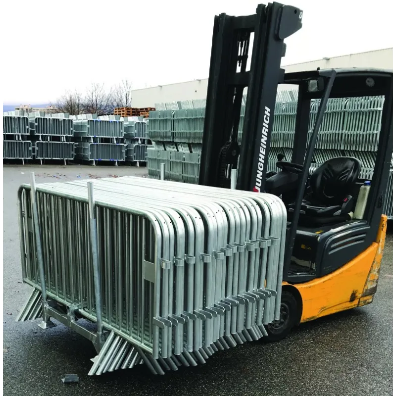 La palette porte barrière est idéale pour transporter vos barrières de police. Résistante aux intempéries. Elle permet d'offrir un gain de temps, de place et moins de fatigue pour le personnel qui manipule les barrières Vauban. Manipulable au transpalette, gerbeur ou chariot élévateur.