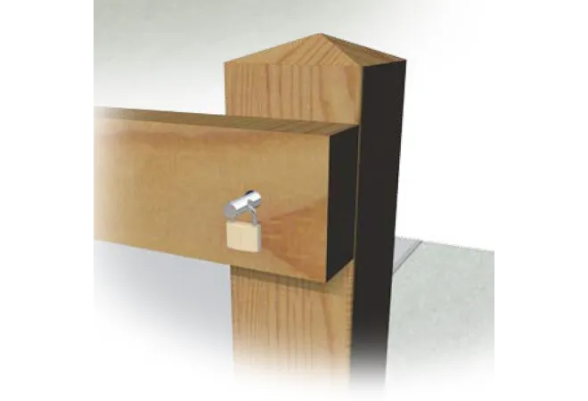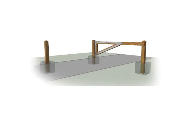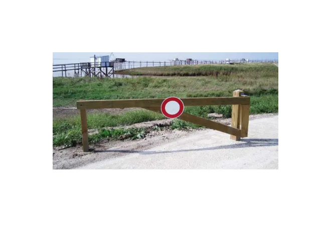 La barrière en bois campagnarde se décompose d'une barrière de 3 mètres et de 3 poteaux. 2 poteaux servant de piliers et le troisième, servant de poteaux d'arrêt. La barrière peut se fermer par un cadenas.