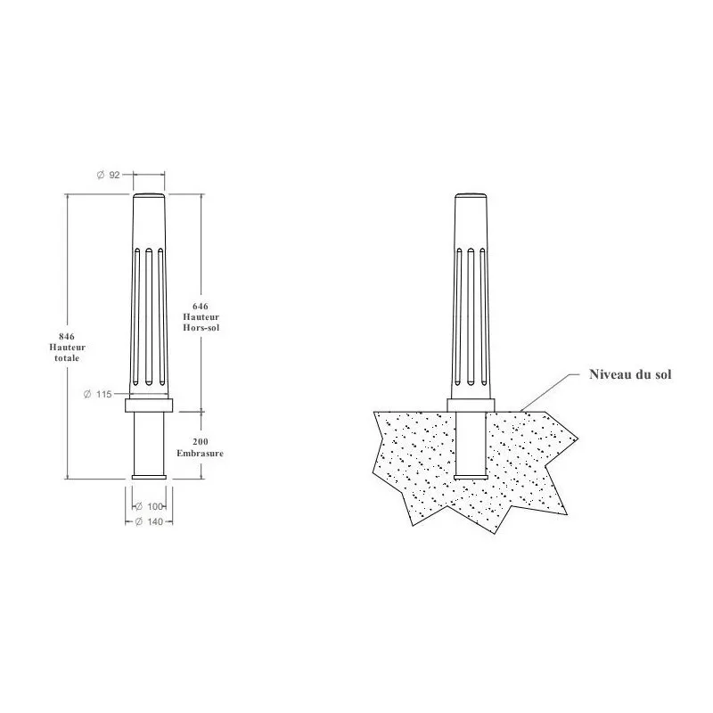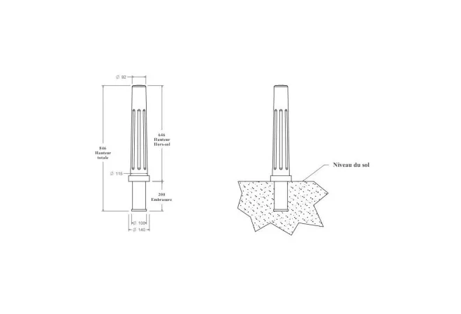 - À fixer au sol dans un plot béton ou amovible sur son boitier avec couvercle en option