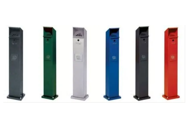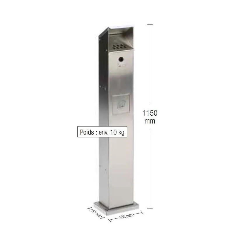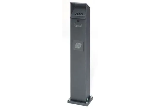 Cendrier corbeille colonne métallique pour collectivités, à installer en intérieur ou en extérieur, discret et pratique, occulte les mégots et permet de collecter des macro-déchets.