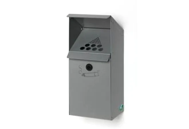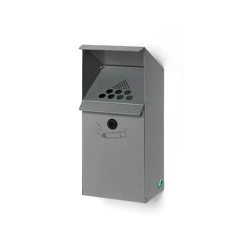 Cendrier mural métallique pour collectivités, à installer en extérieur sur un mur ou en option sur son socle, discret et pratique.