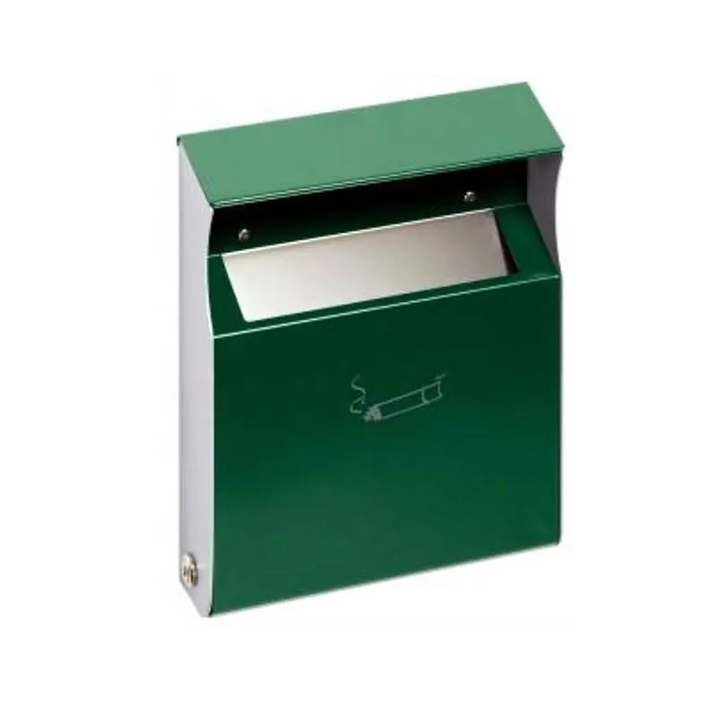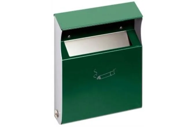 Cendrier mural métallique anti-tempête pour collectivités, à installer en extérieur sur un mur, discret et pratique.