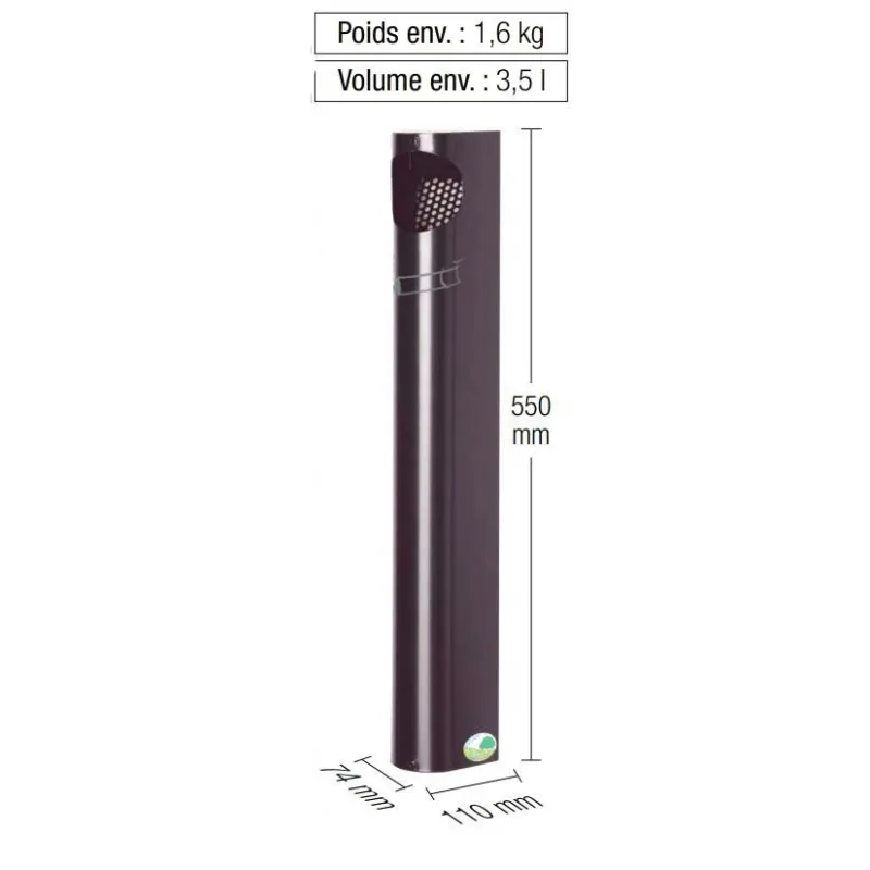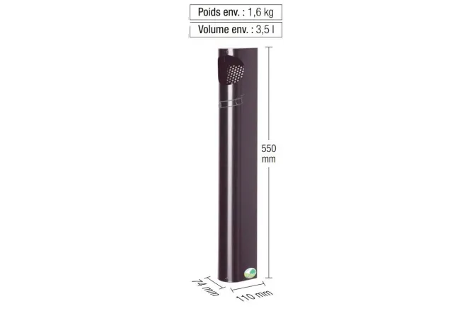 Dimensions du cendrier métal pour collectivités