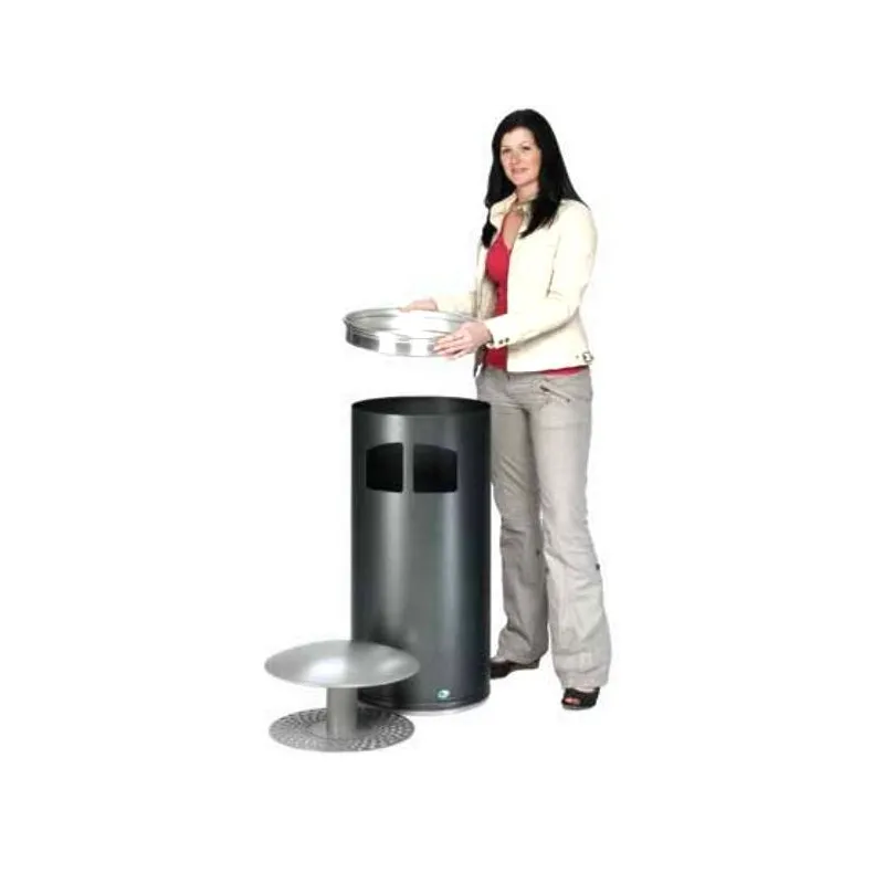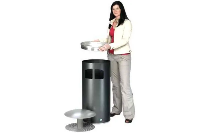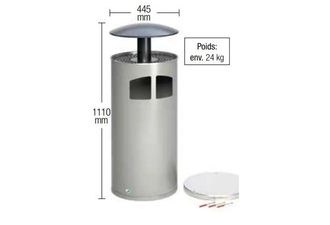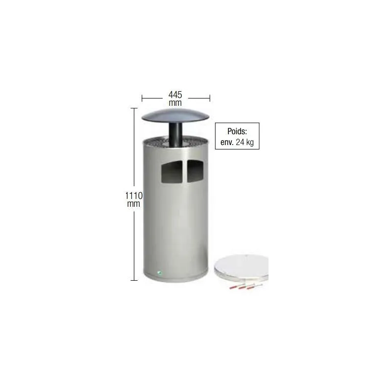 - Livré avec seau intérieur en acier galvanisé capacité 75 Litres. Cendrier, le toit avec disque fixe en tôle d'acier perforé pour les mégots