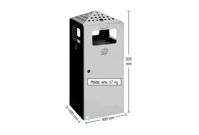 Dimensions du cendrier corbeille 2 en 1 pour les collectivités