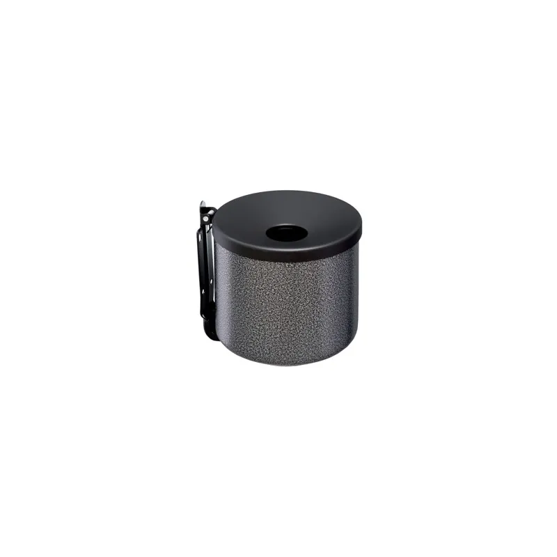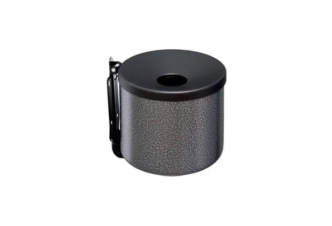 Cendrier mural avec couvercle étouffoir en acier poudré époxy. Dispose d'une bride de fixation murale en 4 points en acier poudré époxy. Vidage par rotation du bac.