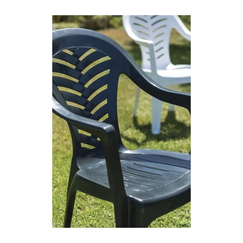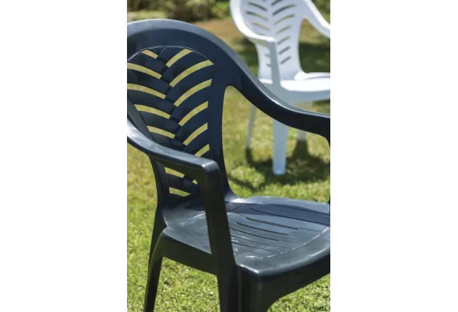 Un fauteuil polypro empilable pour un gain de place au rangement. Fauteuil disponible en blanc, vert foncé ou gris anthracite. Ce fauteuil très léger a subi une protection contre les UV. Utilisation intérieure et extérieure.