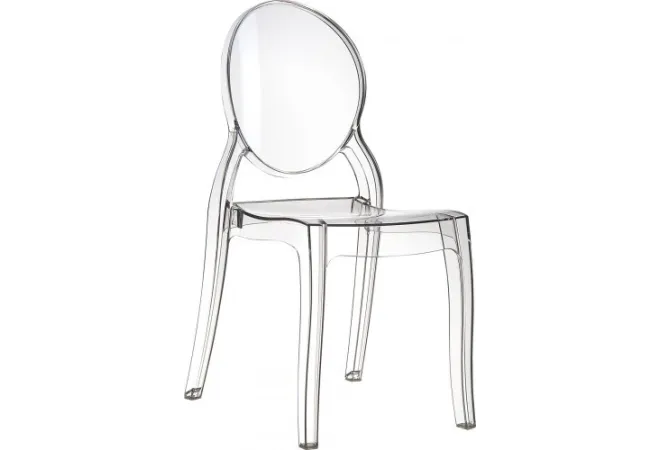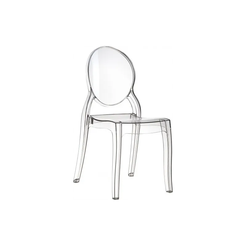Une magnifique chaise transparente en polycarbonate. Une assise confortable et de belles formes rondes pour une décoration raffinée. Une chaise qui apporte à l'ensemble du mobilier, un effet beaucoup plus spacieux en laissant entrevoir toute la pièce par transparence.