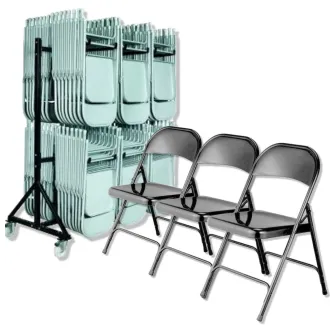 Cette chaise pliante métallique dispose de 2 barres de renfort au niveau du piètement, d'une double charnière de chaque côté et de 4 tampons antibruit. Ses différentes couleurs permettent de l’intégrer dans différentes salles et de s’en servir pour diverses occasions. Léger, ce modèle de chaise pliante s’installe et se range facilement. Une fois pliée, elle permet d'optimiser l'espace disponible dans les lieux de stockage.