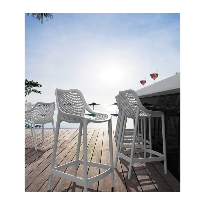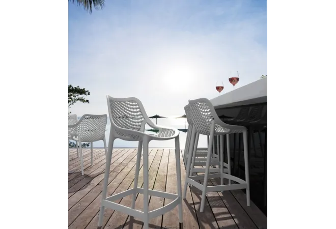 Une chaise haute qui se décline en 2 hauteurs : hauteur d'assise en 75 cm et hauteur d'assise en 65 cm. La chaise haute Palma pourra être utilisée en intérieur comme en extérieur. Cette chaise est en polypropylène injecté et en fibre de verre grâce à une technologie de moulage par gaz. Chaise haute sans raccord, monobloc.