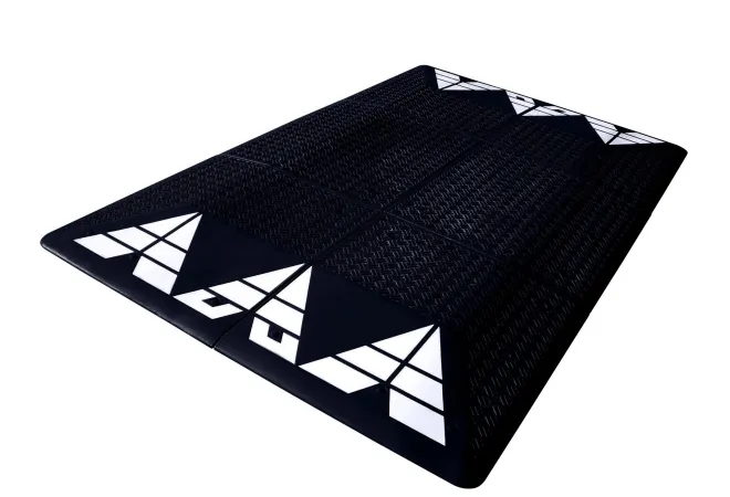Ce coussin ralentisseur routier, aussi appelé "Coussin Berlinois" permet de faire ralentir le trafic automobile sans gêner les motos et bus. Ce modèle de coussin ralentisseur Berlinois est conforme aux recommandations du CERTU.