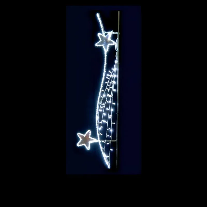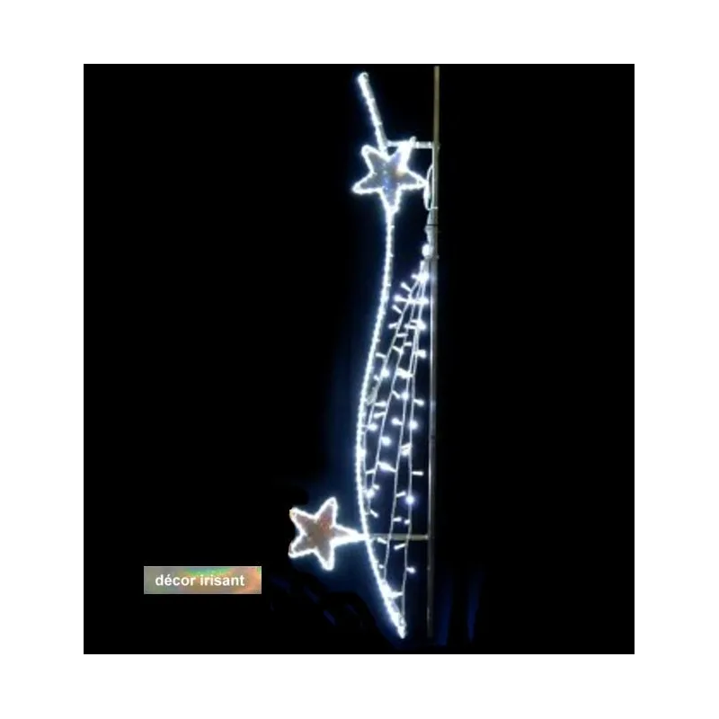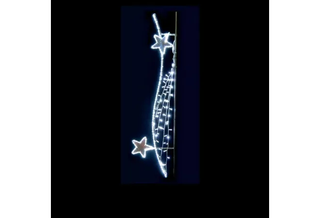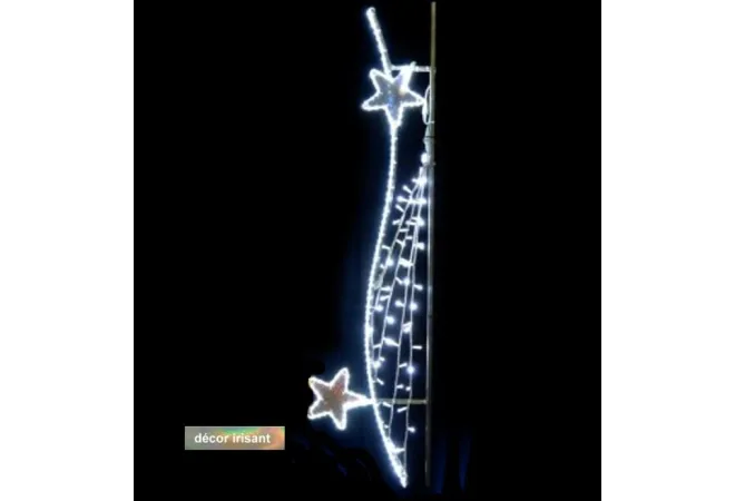 Le décor lumineux Estelle lumineuse pour éclairage public sur poteau est une illumination à suspendre pour les fêtes de Noël. Un décor d'habillage de réverbère à LED pour illuminer les villes. Fabriquée en France et livrée avec une garantie de deux ans, il renouvellera et dynamisera vos décorations de Noël.