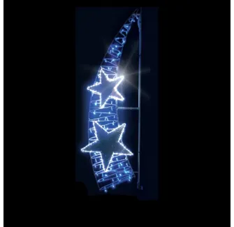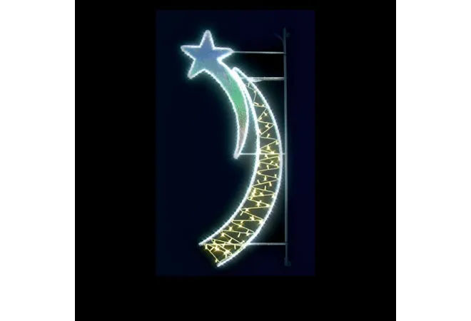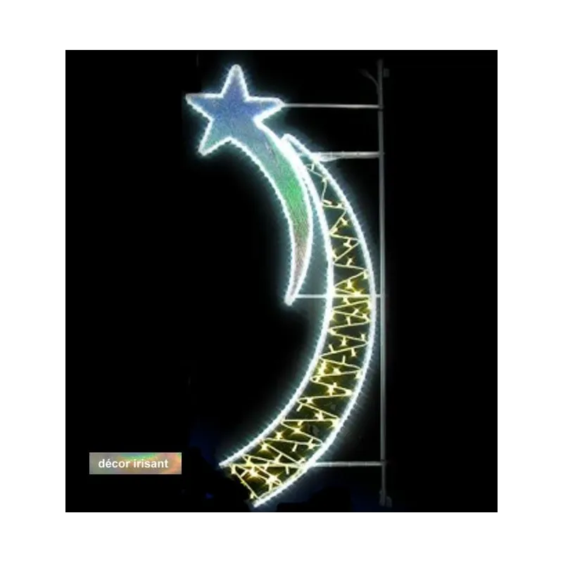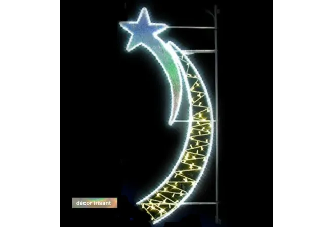Le décor lumineux Comète givrée à leds pour poteau est une illumination pour extérieurs féerique pour les fêtes de Noël. Un décor d'habillage de réverbère à LED pour illuminer les villes. Fabriquée en France et livrée avec une garantie de deux ans, il renouvellera et dynamisera vos décorations de Noël.