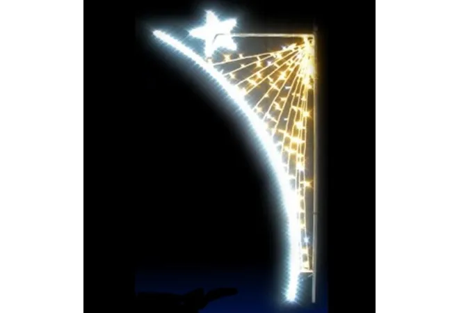 Le décor lumineux Route des étoiles scintillants pour fixer sur poteau est une illumination de collectivités à leds spécial pour les fêtes de Noël. Un décor d'habillage de réverbère à LED pour illuminer les villes. Fabriquée en France et livrée avec une garantie de deux ans, il renouvellera et dynamisera vos rues et décorations de Noël.
