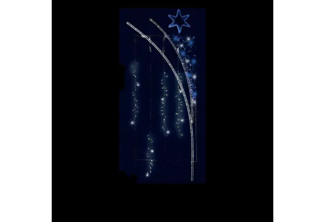 La pluie d'étoiles est une décoration de Noël pour poteau dont le nom parle de lui-même. Faites tomber des averses de lumière sur votre commune, le temps de fêtes. Garantie deux ans et de fabrication française, elle allie un sens aigu du féerique à une durabilité optimale.