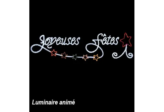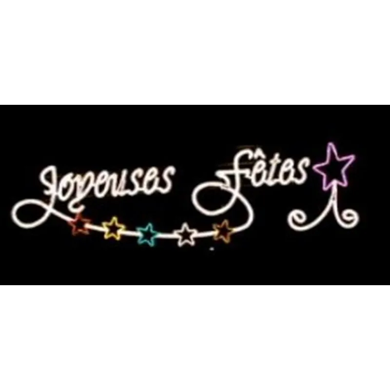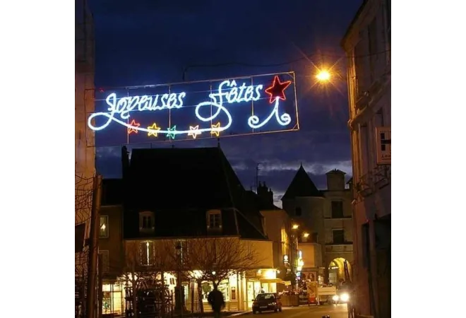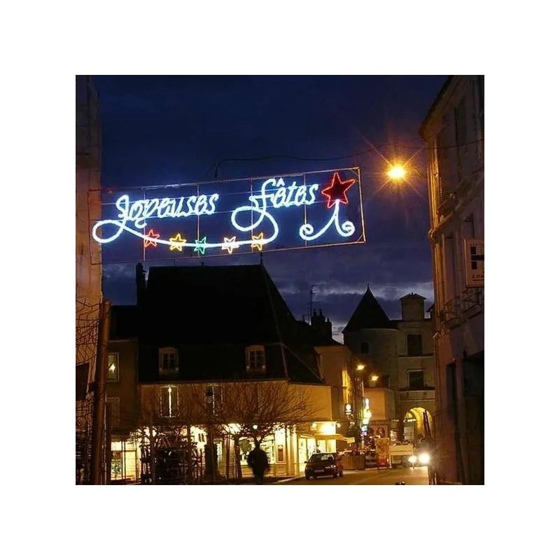 Souhaitez aux habitants de votre commune de "Joyeuses Fêtes" en lumière. La guirlande traverse de rue à texte animé "Joyeuses Fêtes" est un décor parfait pour embellir vos rues le temps des fêtes de fin d'année. Vos rues sont transfigurées et changées en puits de lumière.