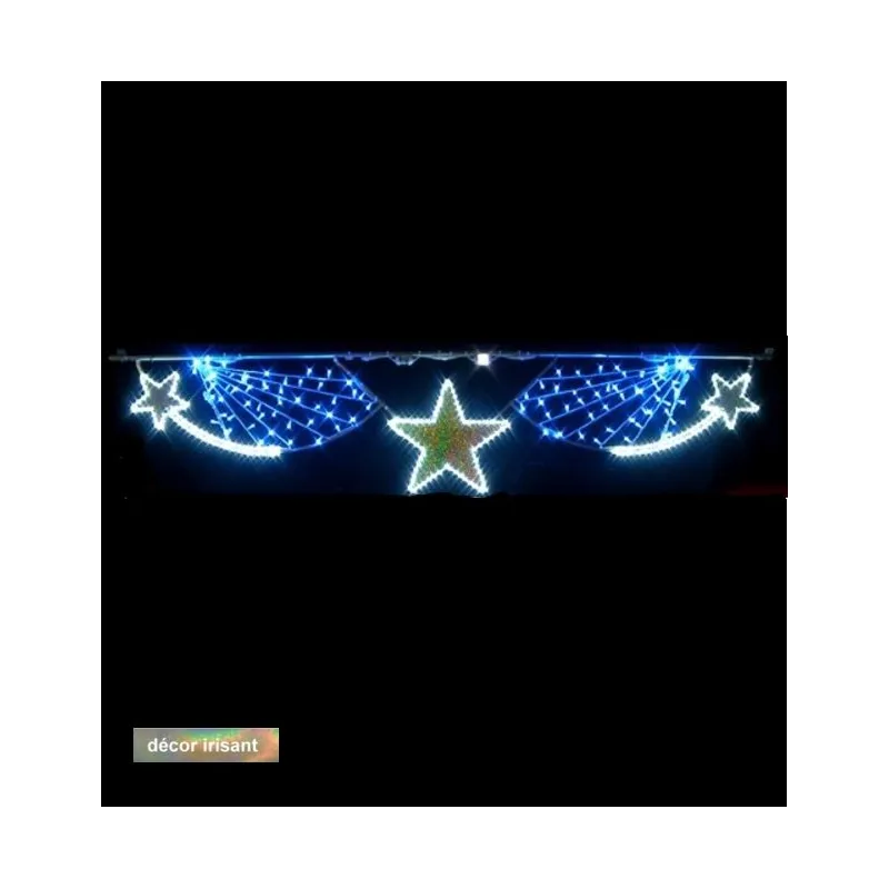 Que diriez-vous de voir s'illuminer votre ville à l'approche de Noël ? Leader Équipements, avec son décor motif lumineux Mer étoilée à led vous propose d'illuminer les yeux des habitants de votre commune avec nos luminaires extérieurs traverses de rue en décors du mobilier urbain. La guirlande lumineuse sur structure à suspendre est un décor parfait pour embellir vos rues le temps des fêtes de fin d'année. Vos rues sont transfigurées et changées en puits de lumière. Fabriqué en France, le décor extérieur de mairies est garanti deux ans.